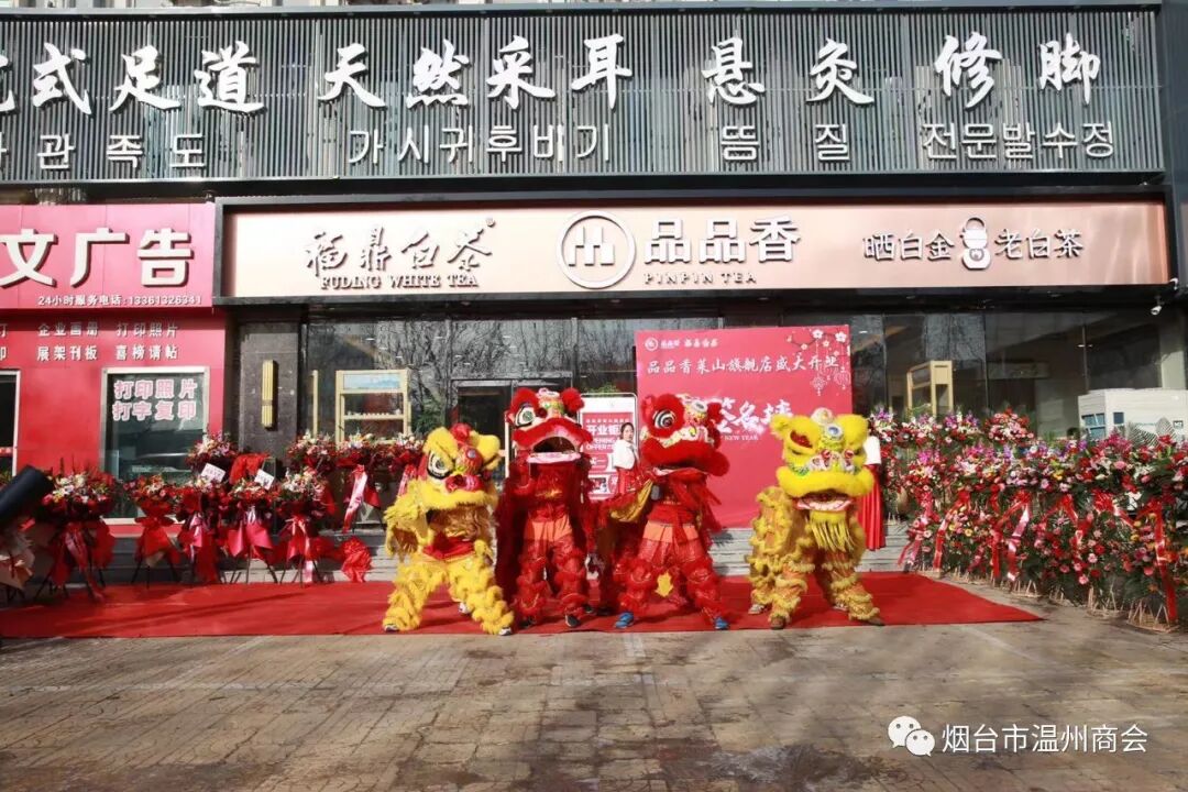 2021年1月12日上午,烟台市温州商会理事企业-----烟台归若文化艺术交流有限公司隆重举行“品品香白茶莱山旗舰店”开业典礼,烟台市温州商会会长陈光晓,执行会长兼秘书长项光清,常务副会长屠少武,副会长厉云杰、洪邦傥,烟台市眼镜商会会长谢公北,烟台市潍坊商会常务副会长张金光,国际企业联合会、世康会会长王鹤年先生等40余位嘉宾参加了活动。