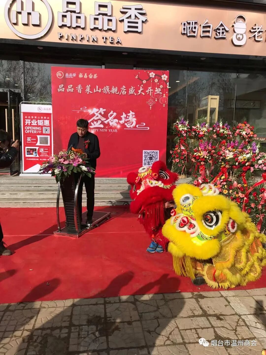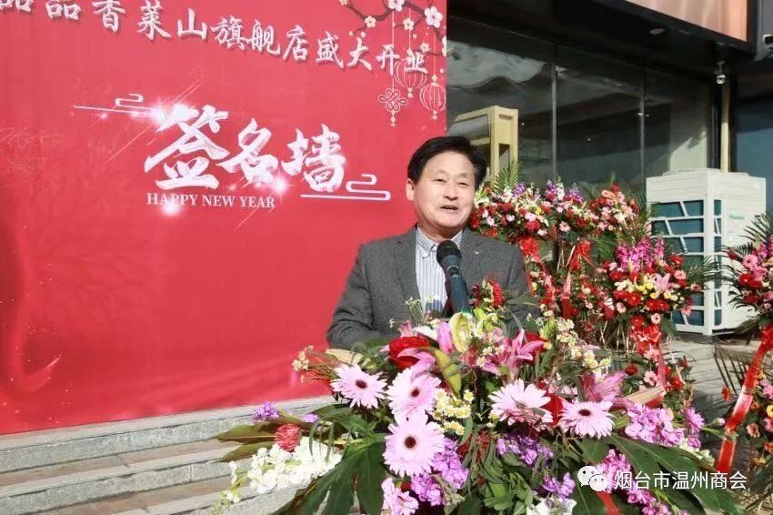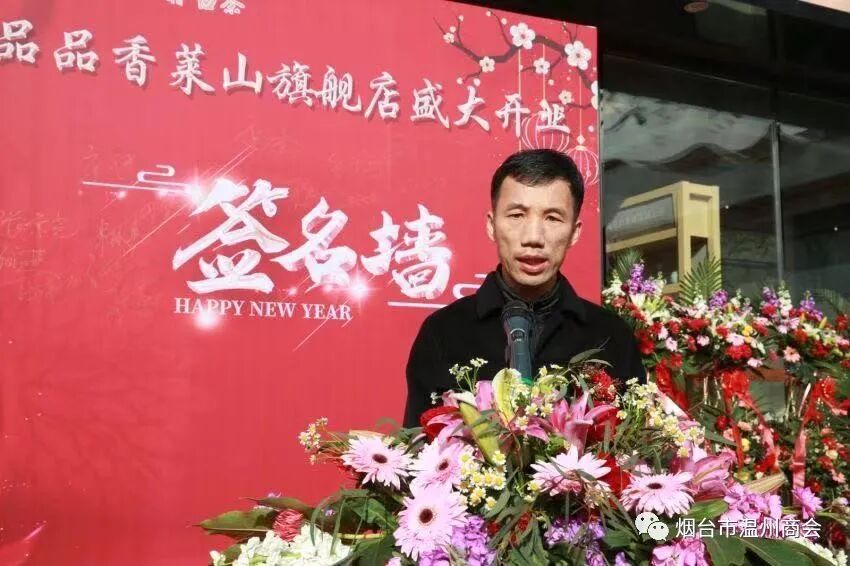 烟台市温州商会会长陈光晓在致辞中代表烟台市温州商会对旗舰店的开业表示热烈祝贺!衷心祝福品品香白茶莱山旗舰店生意兴隆,财源茂盛!